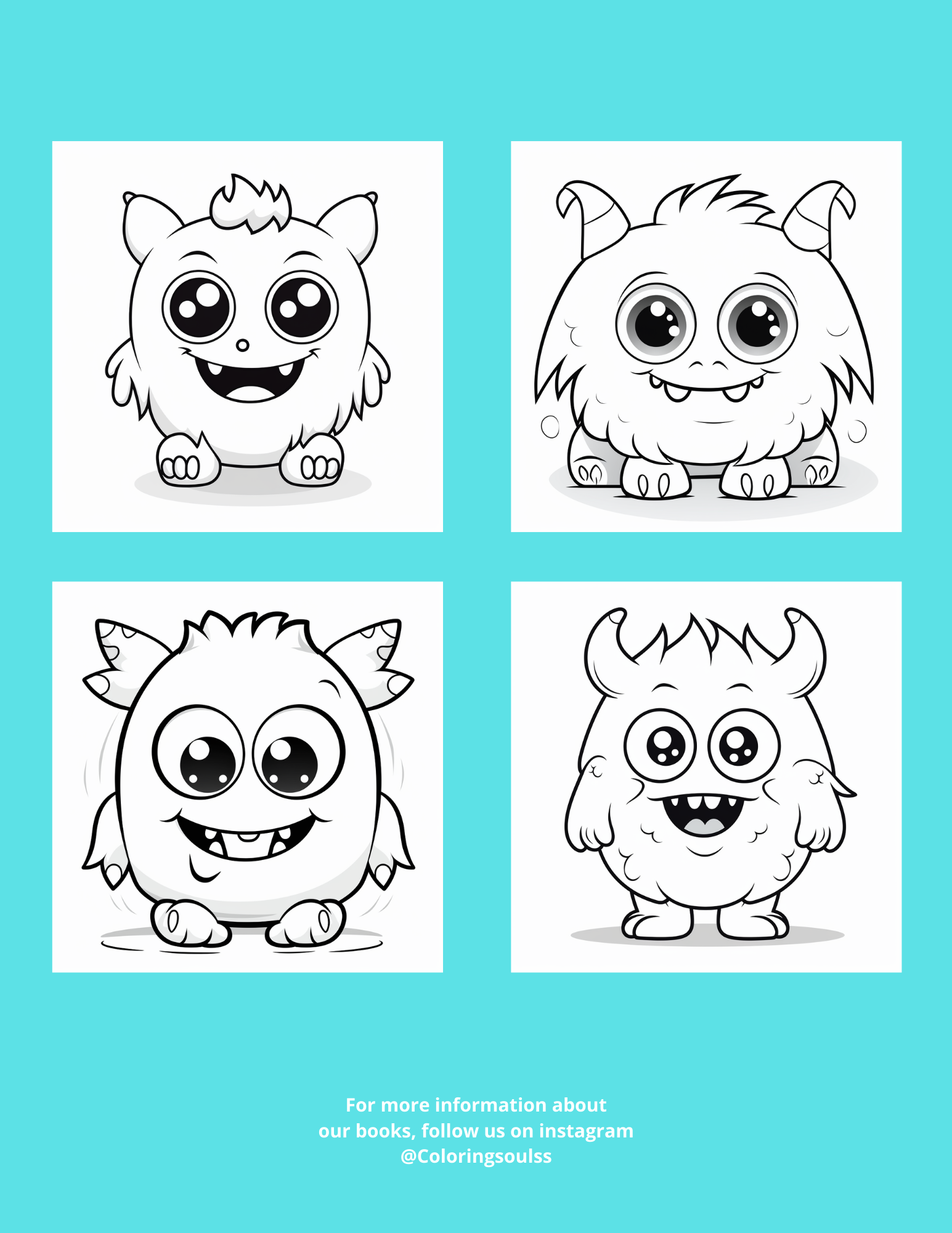 ✔️ 30 SHOCKING KAWAII MONSTERS COLORING PAGES
